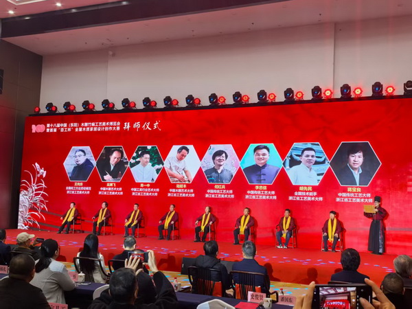 开幕式上还举行了浙江广厦大学工艺美术精英班开班和市职教中心木雕家居专业学生向行业大师拜师仪式。浙江省工艺美术大师、李忠信红木董事长李忠信等端坐台前,接受学子的行礼和鞠躬。这一仪式,不仅是对“师徒传承”这一古老技艺传递方式的致敬,更彰显了李忠信红木对行业人才培育的深远布局。